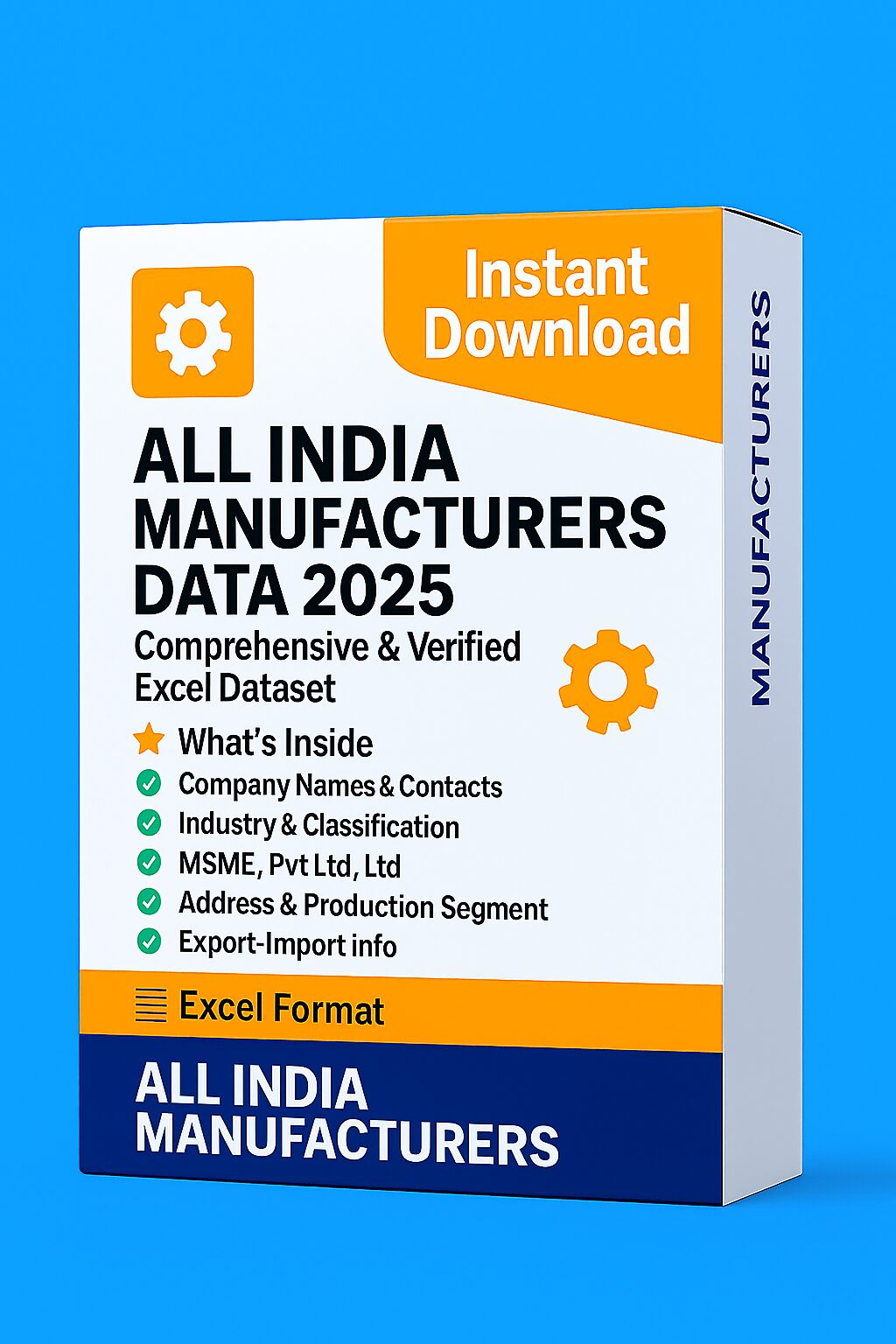 The All India Manufacturers Data is more than just a spreadsheet — it is your edge in navigating India’s massive manufacturing landscape. With over 3 million verified manufacturer records, spanning MSMEs, Pvt Ltd, exporters, and large-scale units, it’s the most reliable way to access key decision-makers across sectors.