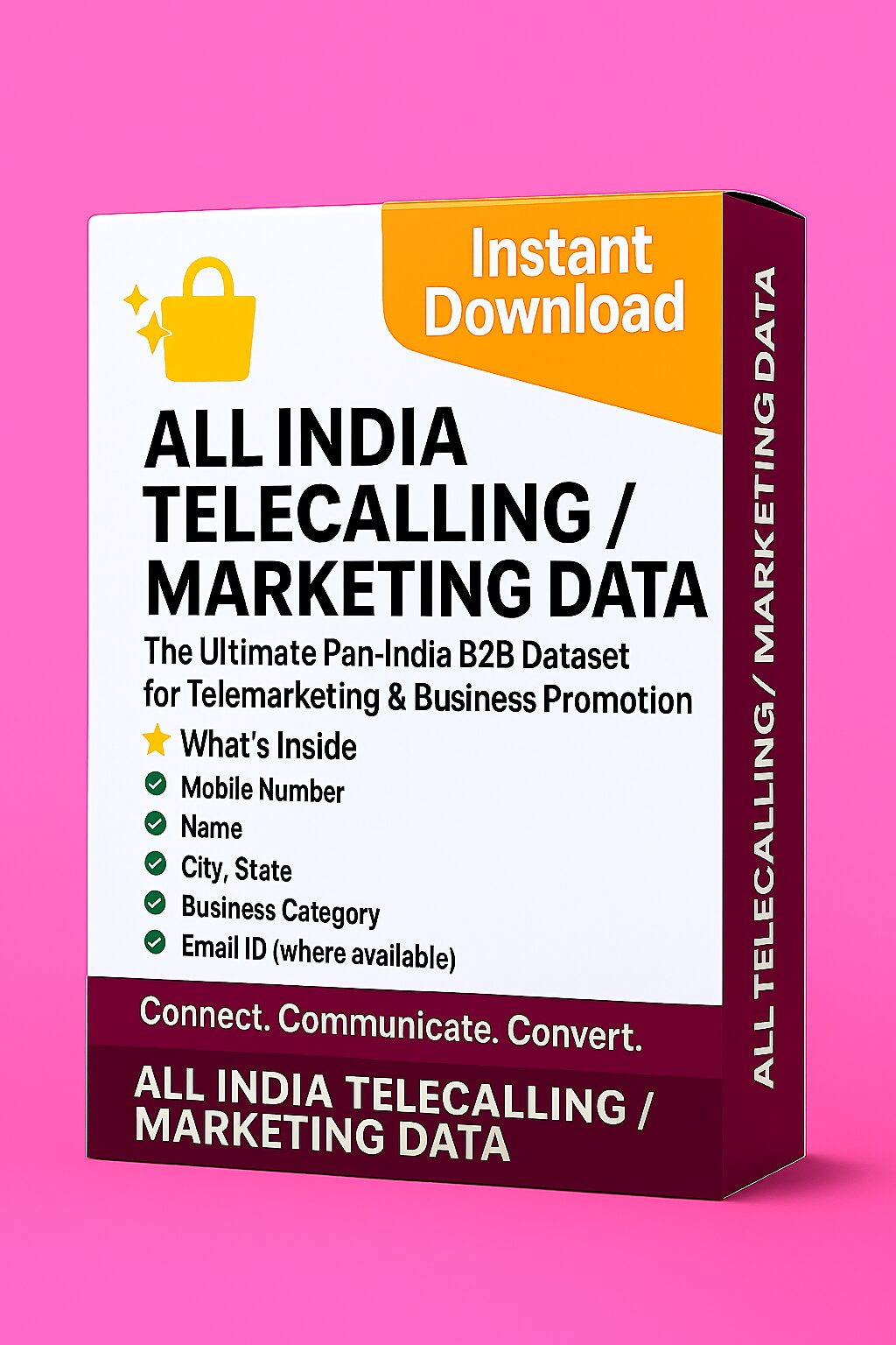 In the fast-paced world of digital business and B2B marketing, real data is real power. With our All India Telecalling / Marketing Data, you’re not just buying a list—you’re investing in a tool that connects your business with the right people, at the right place, at the right time.
