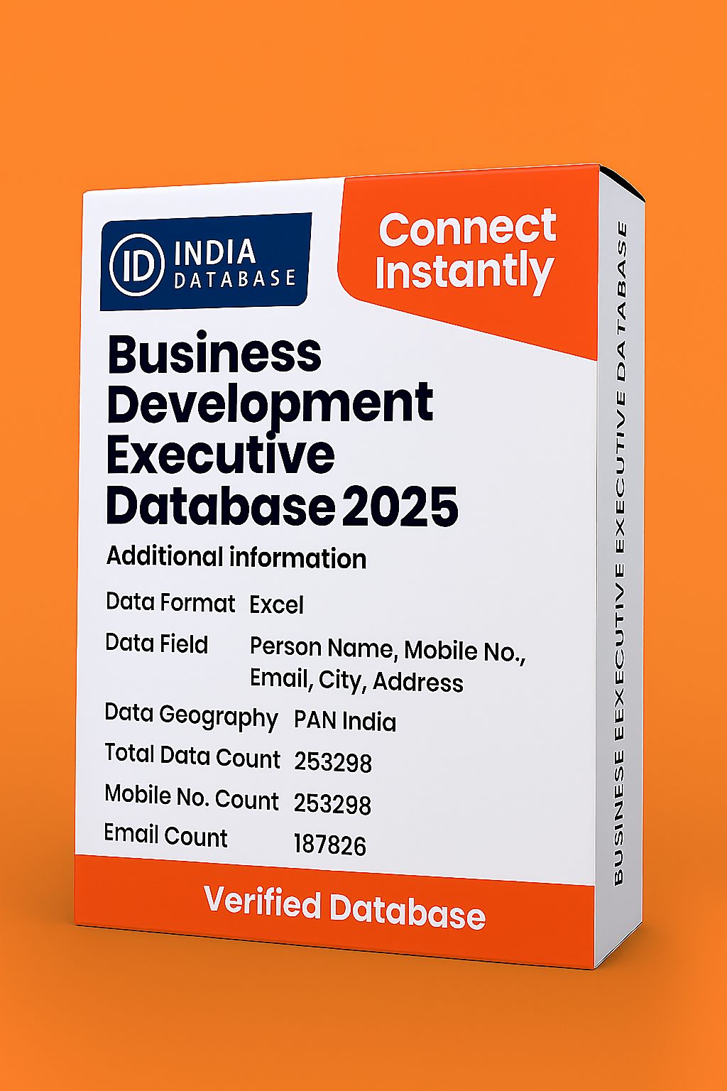 The Business Development Executive Database 2025 is a highly detailed collection of verified information about Business Development Executives across India. It is designed to help companies, HR professionals, marketing agencies, placement consultants, and recruiters access the right professionals with ease.